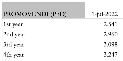 Standar salary PhD di Belanda (semua kampus sama). Source: https://www.nwo.nl/sites/nwo/files/media-files/Salary%20table%20from%201%20July%202022.pdf