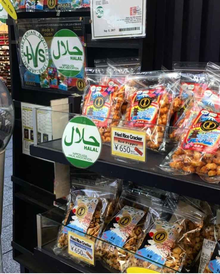 3. Snack label halal di toko paling depan deretan toko kuil Asakusa. Snack tradisional Jepang gitu. Tapi… rasanya kurang cocok di lidah saya. Jadi saya tidak menyarankan beli banyak.